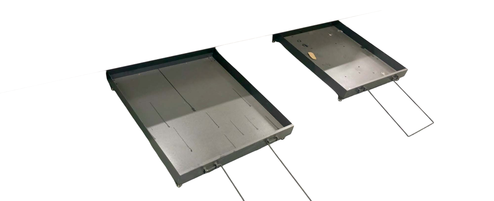Станок укомплектован паллетами для удаления из под станка мелких отходов резки/изделий мелкого размера. Удобная рукоятка позволяет быстро извлечь паллету из-под станка и также быстро установить ее обратно.